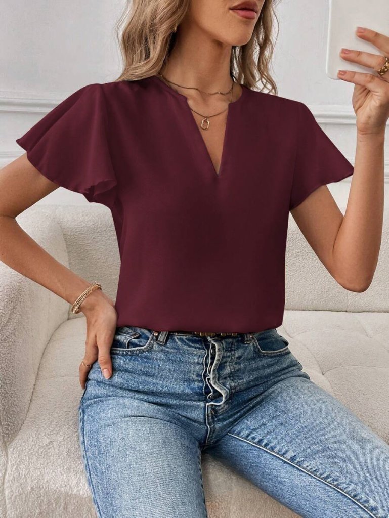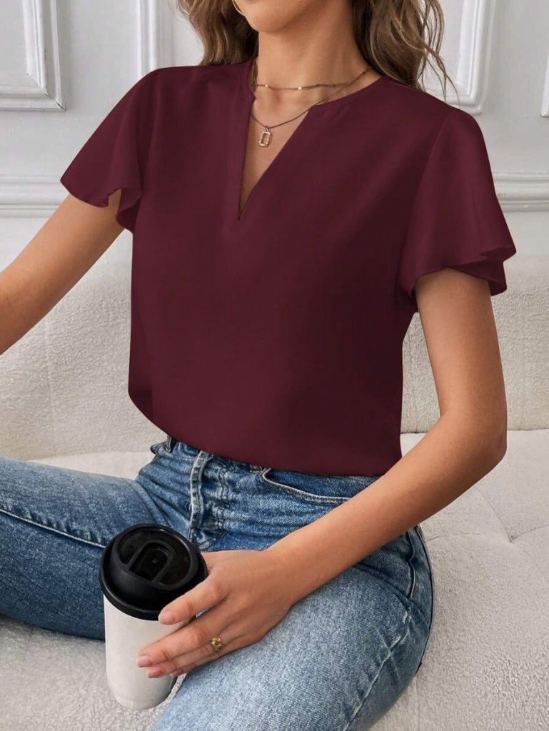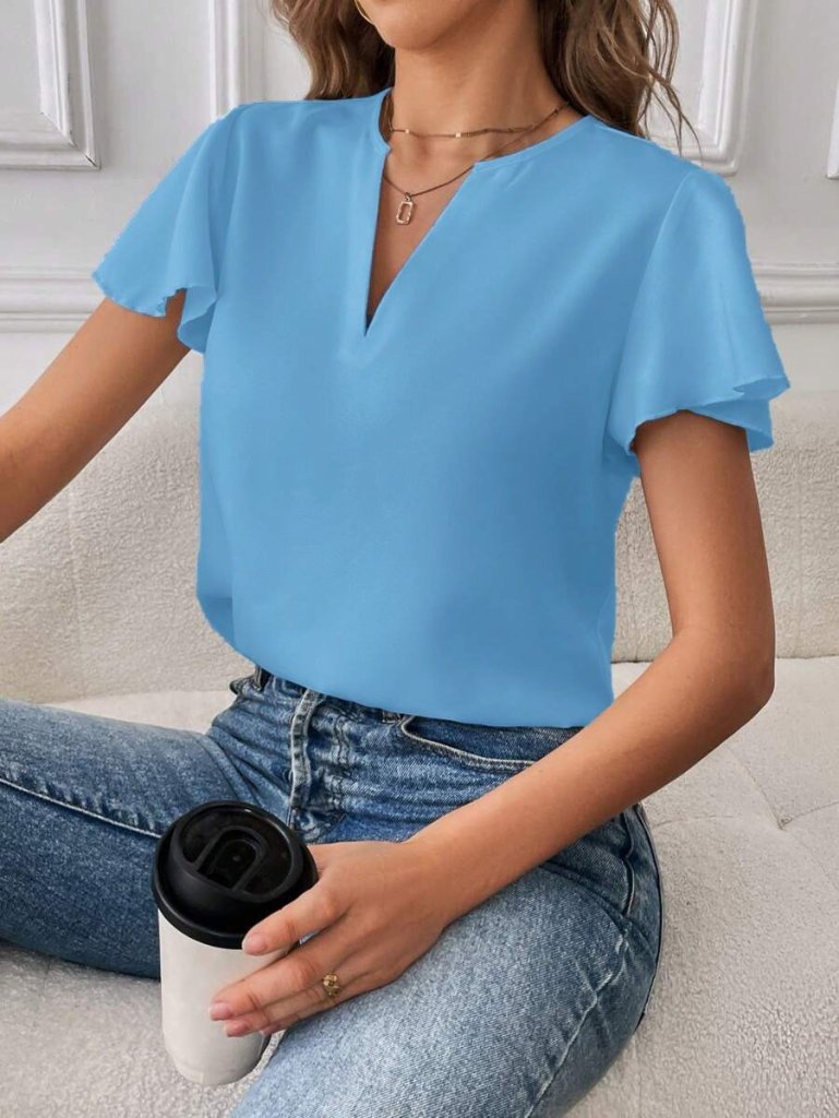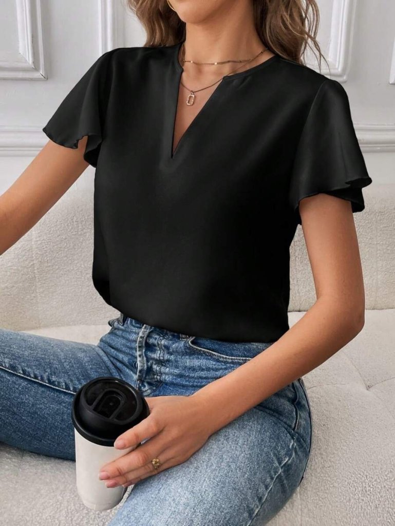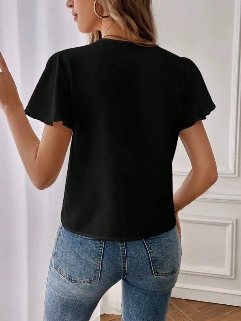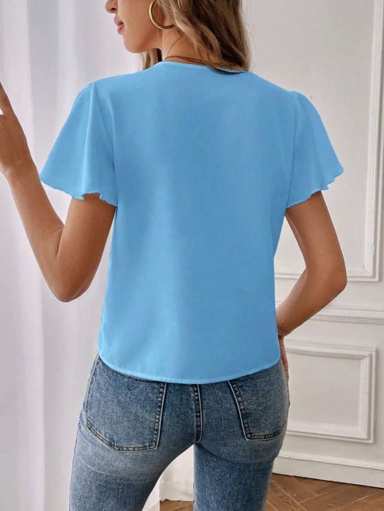 Kadın Kısa Kollu Kelebek Kollu V Yakalı Sandy Bluz