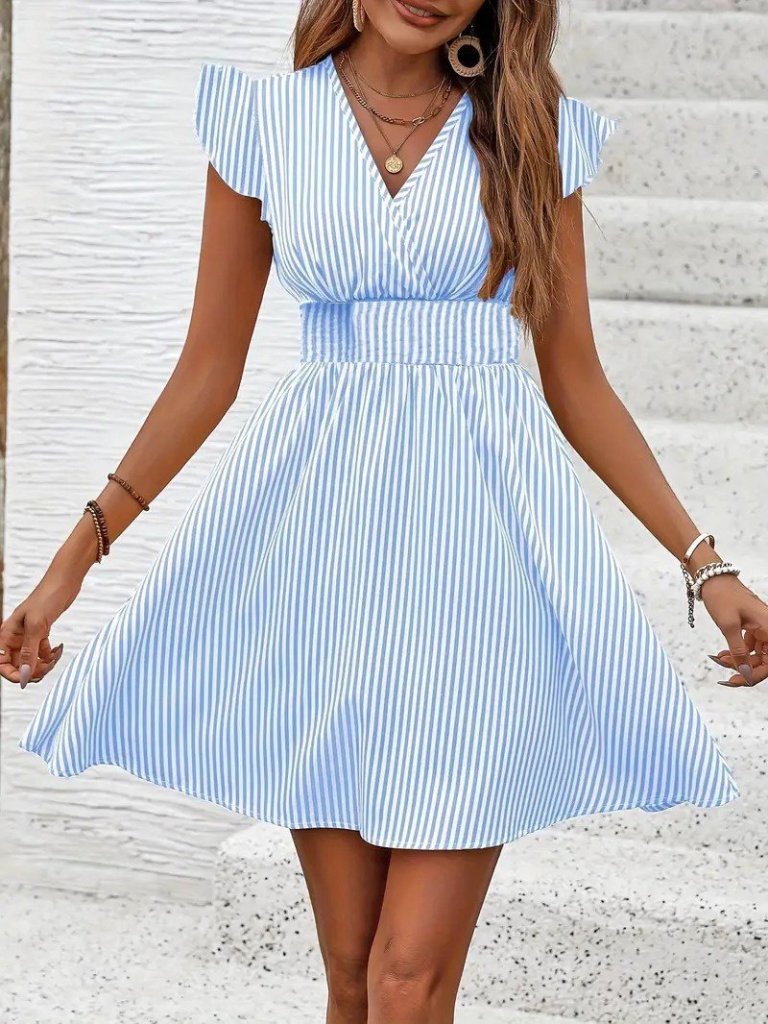 Kadın Kısa Kollu Kruvaze Yakalı Poplin Elbise