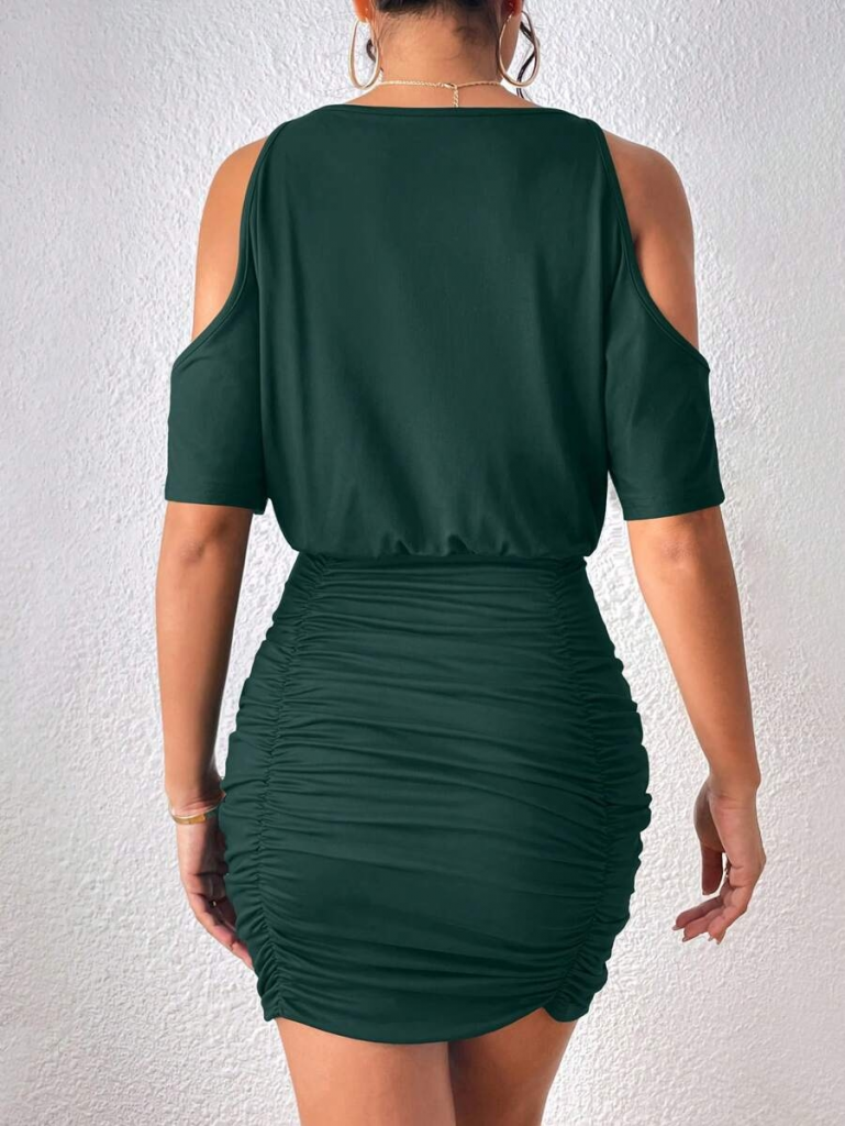 Kadın Kısa Kollu Omuz Dekolte Detay önü Büzgülü Sandy Elbise