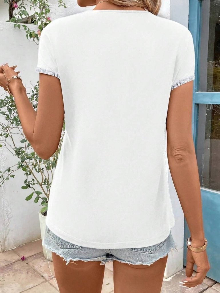 Kadın Kısa Kollu önden Fermuarlı Kol Ucu ışıltılı Viskon Bluz