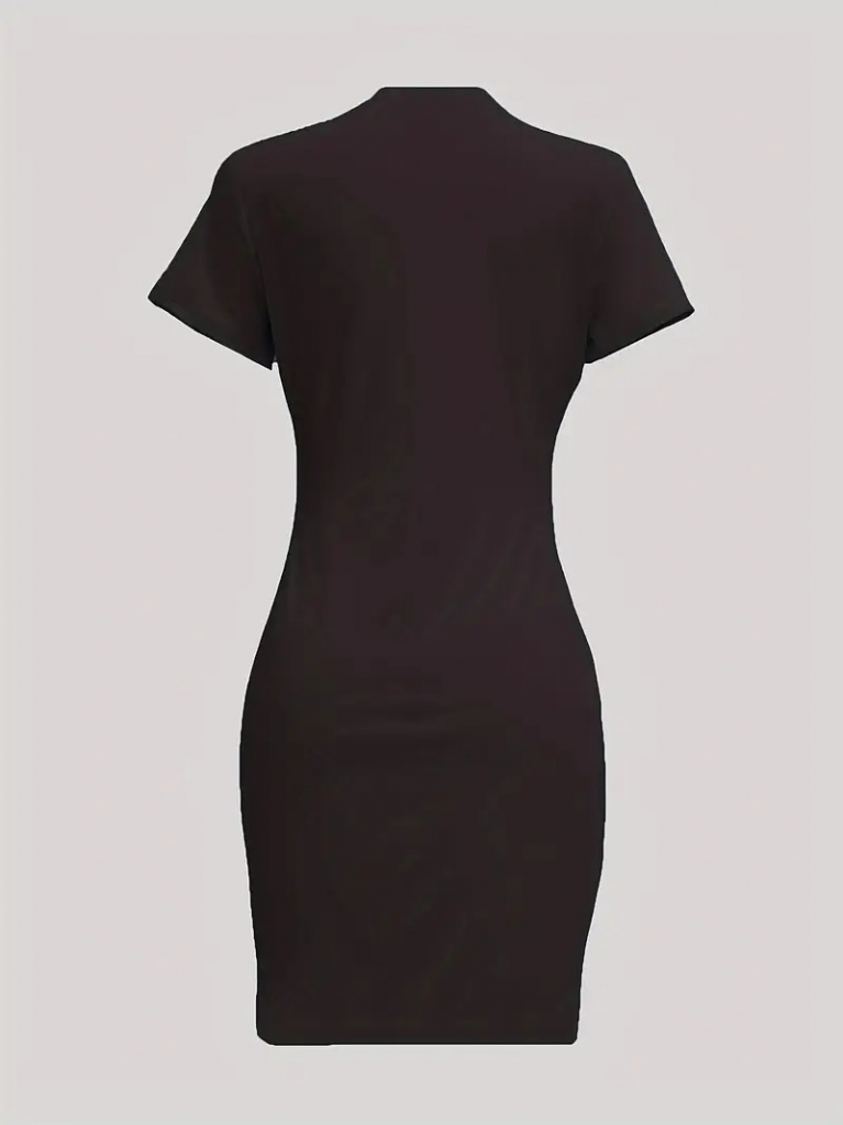 Kadın Kısa Kollu Queen Baskı Iki Iplik Mini Elbise