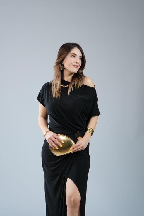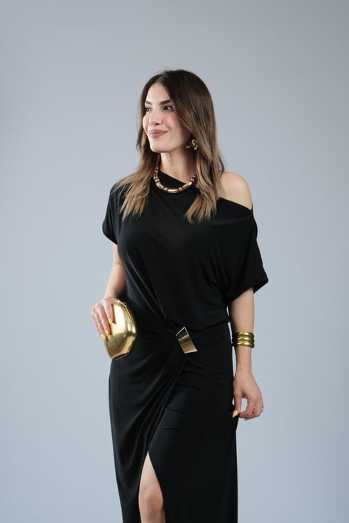 Kadın Kısa Kollu Tek Omuzdan Açık Beli Lastikli Sandy Maxi Elbise