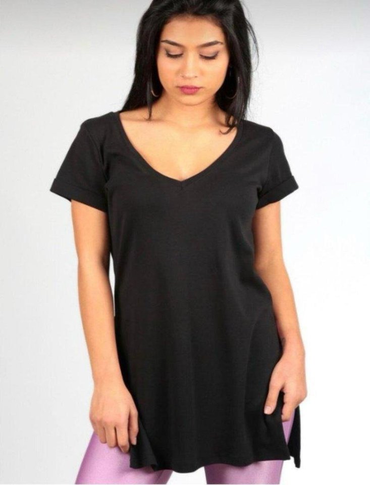 Kadın Kısa Kollu V Yaka Yanları Yırtmaç Detay Penye Bluz