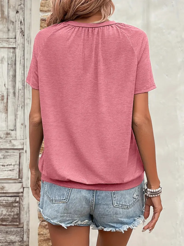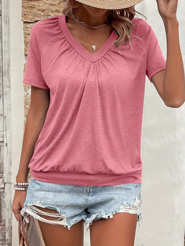 Kadın Kısa Kollu V Yakalı Büzgü Detaylı Viskon Bluz