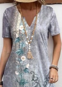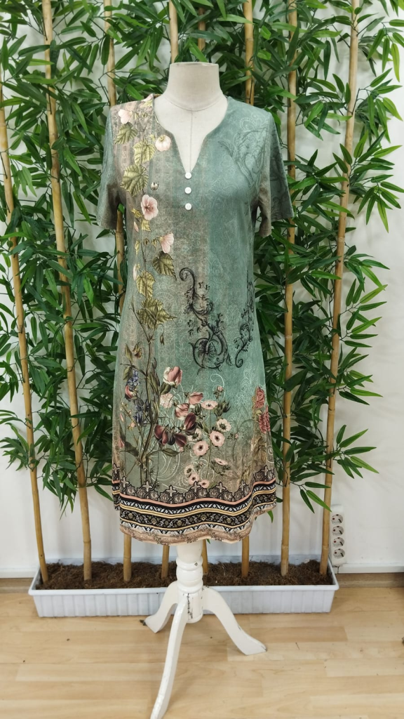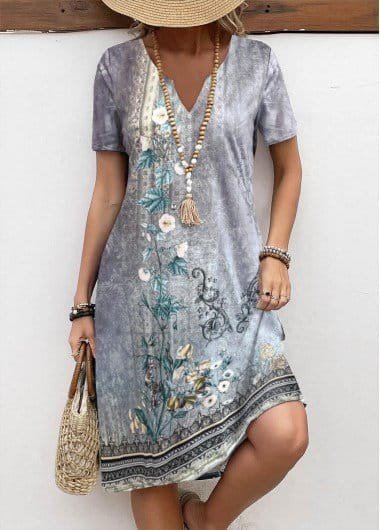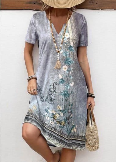 Kadın Kısa Kollu V Yakalı çiçek Baskılı Midi Süprem Elbise