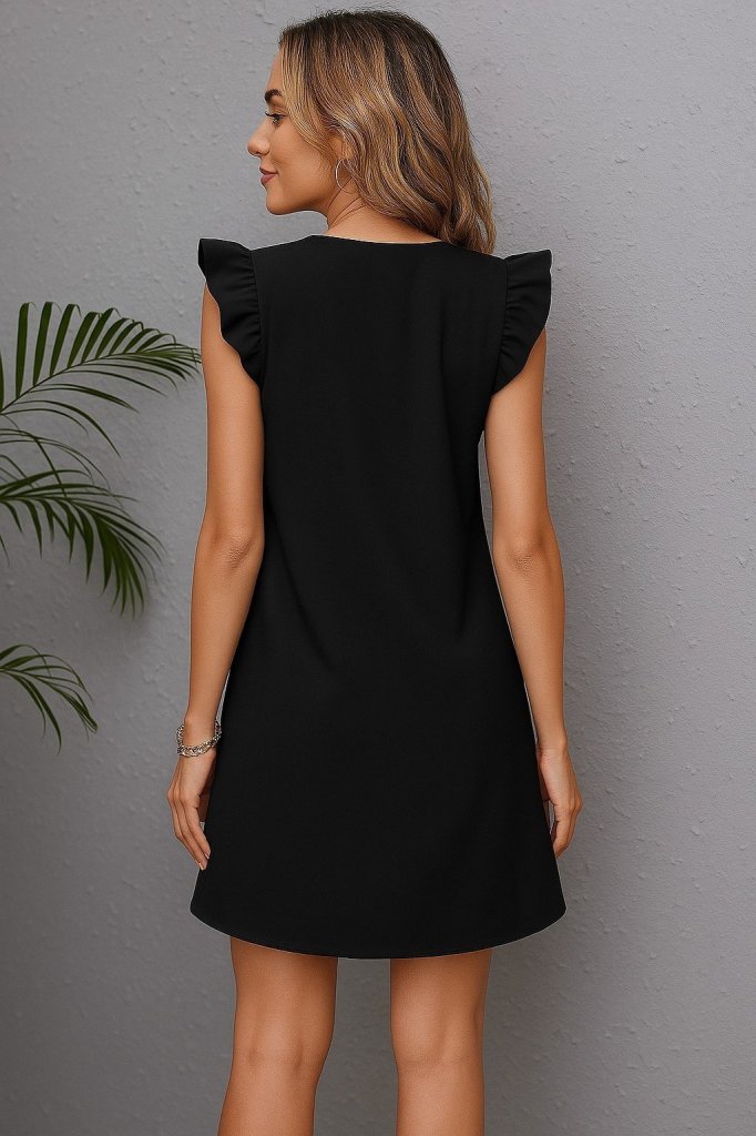 Kadın Kısa Kollu V Yakalı Ithal Krep Elbise