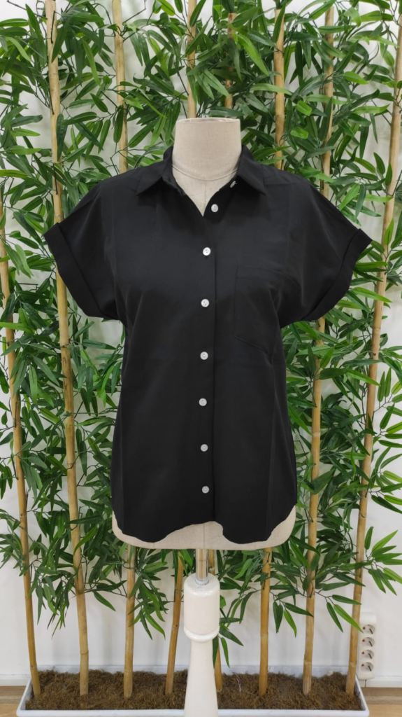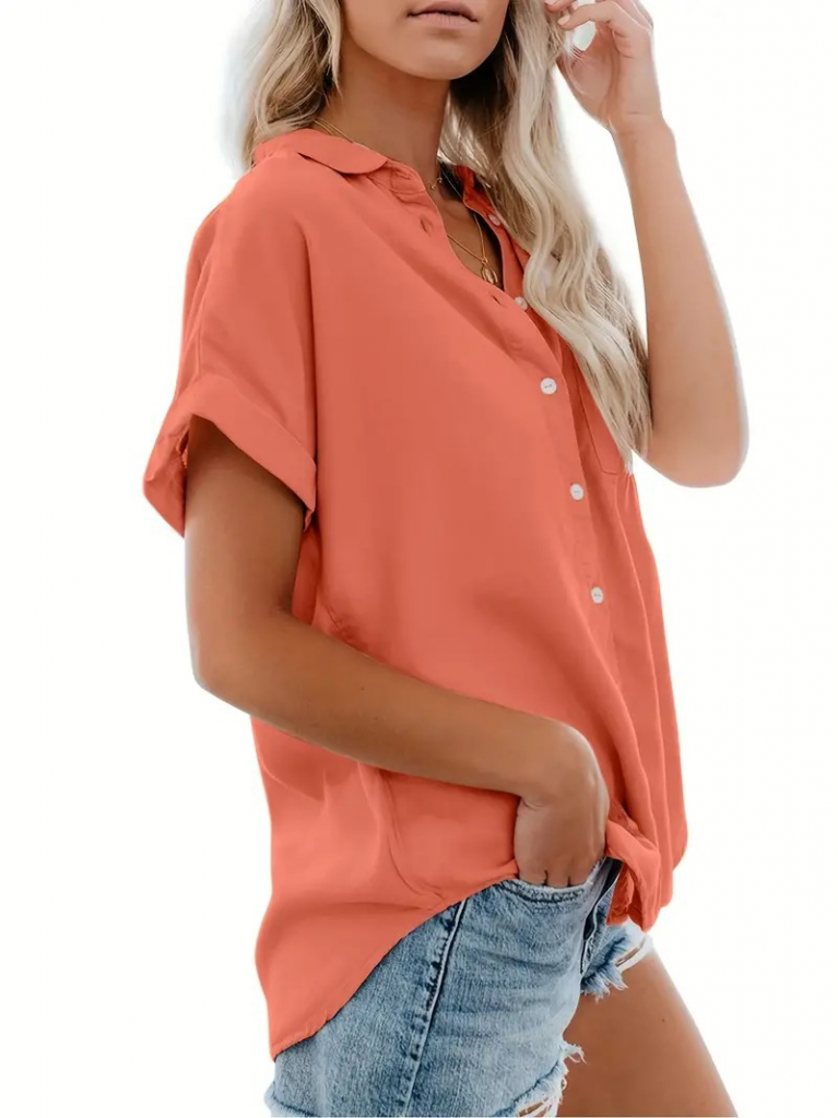 Kadın Kısa Kollu V Yakalı önden Düğmeli Dokuma Gömlek