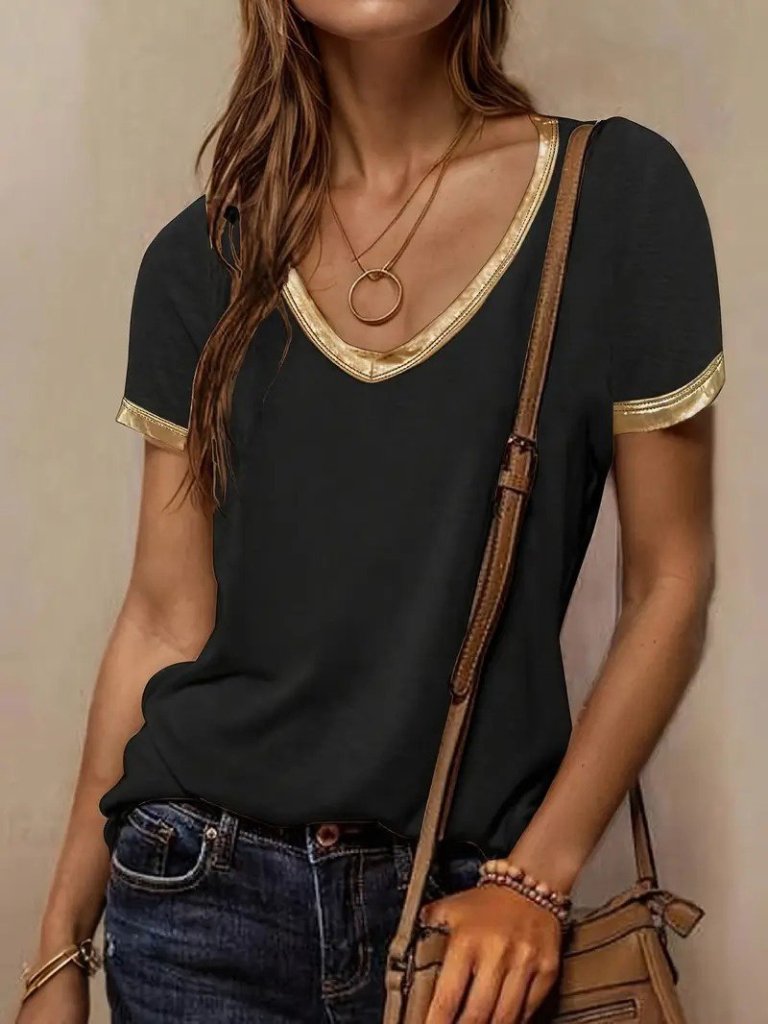 Kadın Kısa Kollu V Yakalı Viskon Bluz
