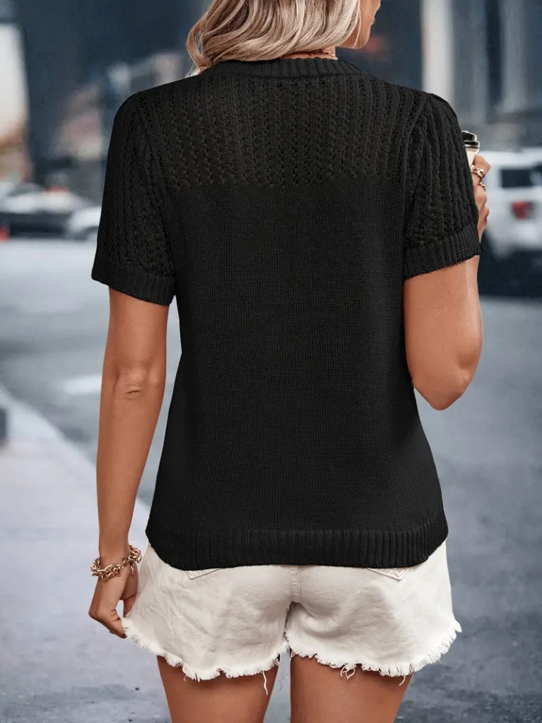 Kadın Kısa Kollu Yaka Detay Triko Bluz