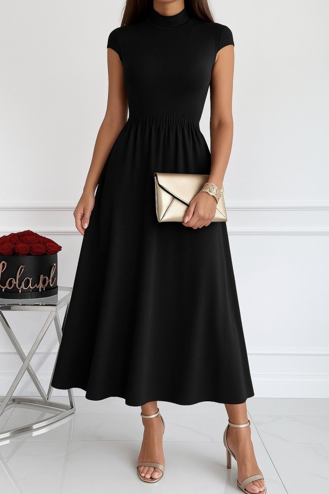 Kadın Kısa Kollu Yarı Balıkçı Yaka Viskon Elbise