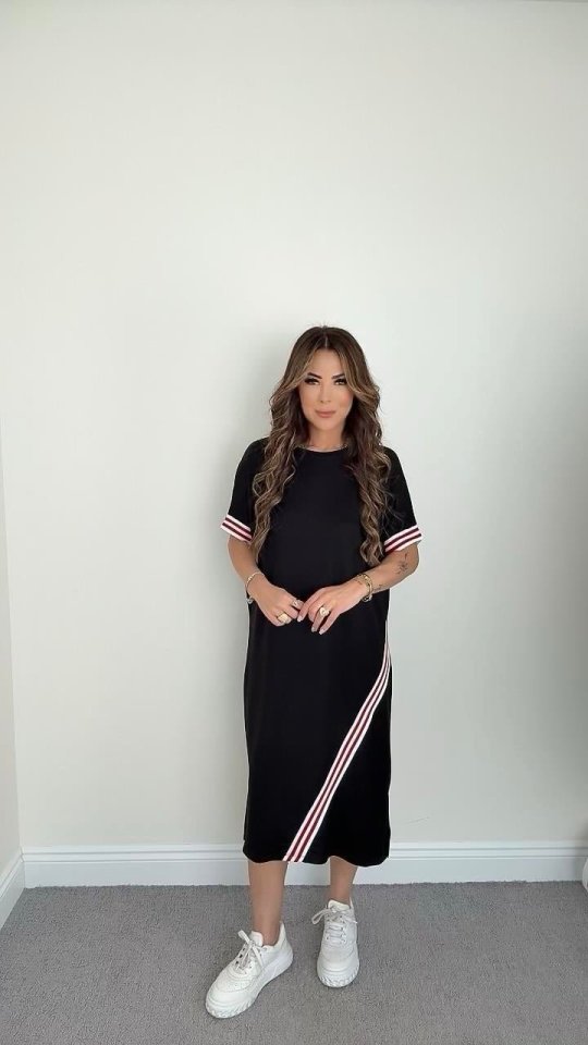 Kadın Kol Ve Etek şerit Detaylı Midi Boy Elbise