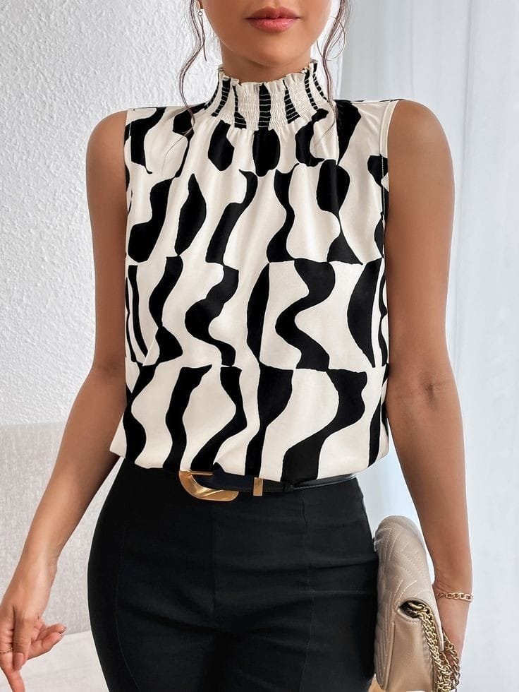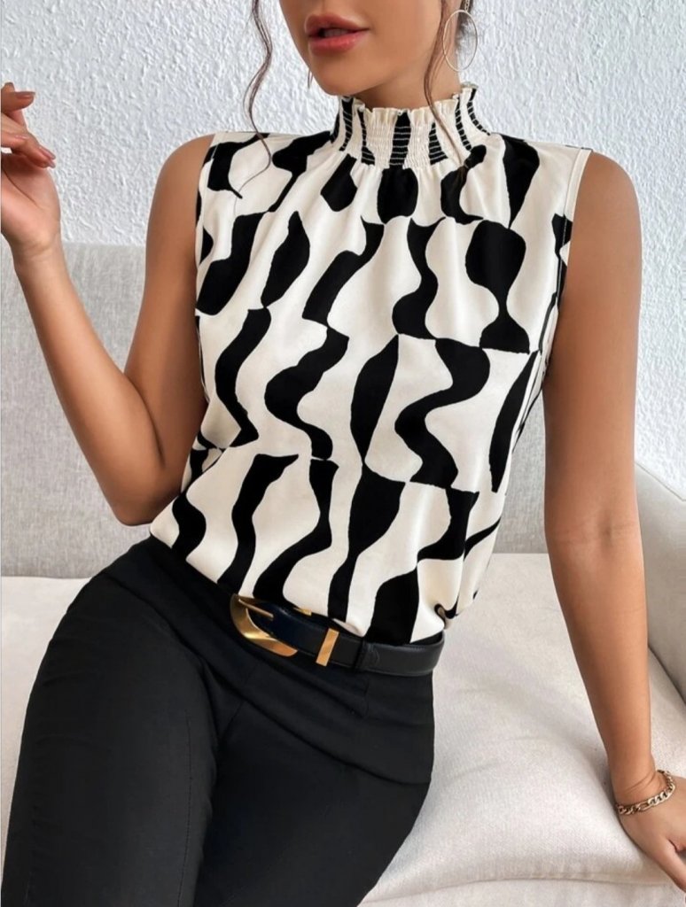 Kadın Kolsuz Balıkçı Yaka Desenli Süprem Bluz