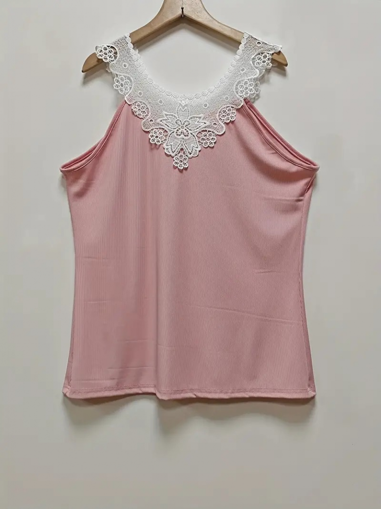 Kadın Kolsuz Dantel Yaka Kaşkorse Bluz
