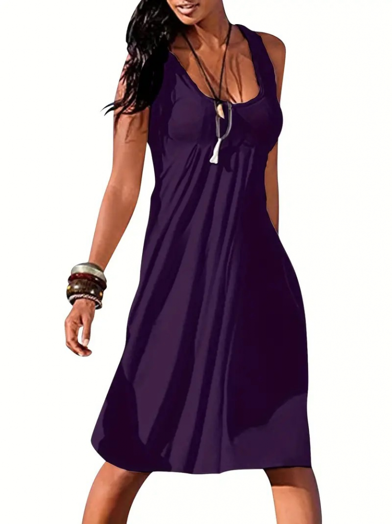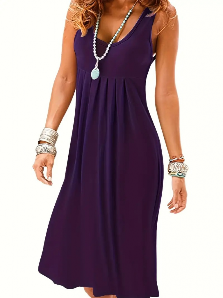 Kadın Kolsuz Göğüs Altı Pileli Viskon Elbise