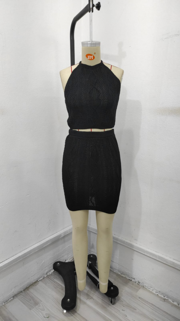 Kadın Kolsuz Mini Erer Crop Ikili Triko Takım