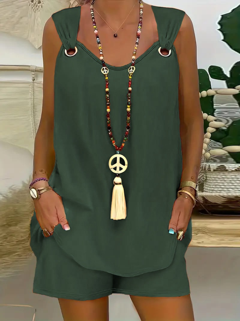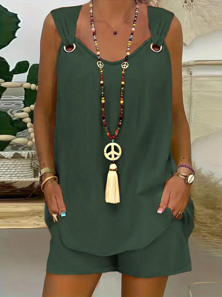 Kadın Kolsuz V Yaka Kuş Gözü Detay Bluz Short Aerobin Ikili Takım