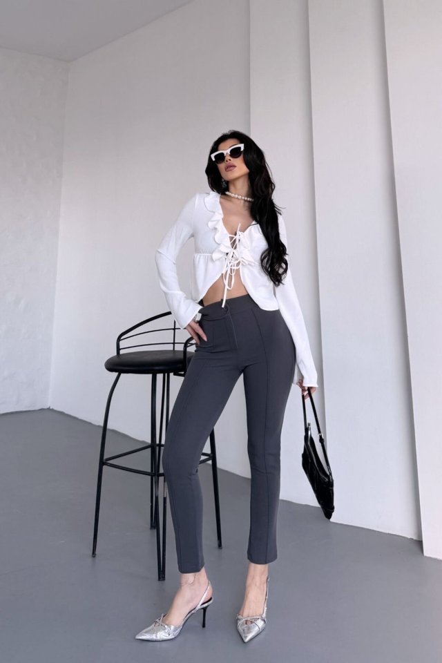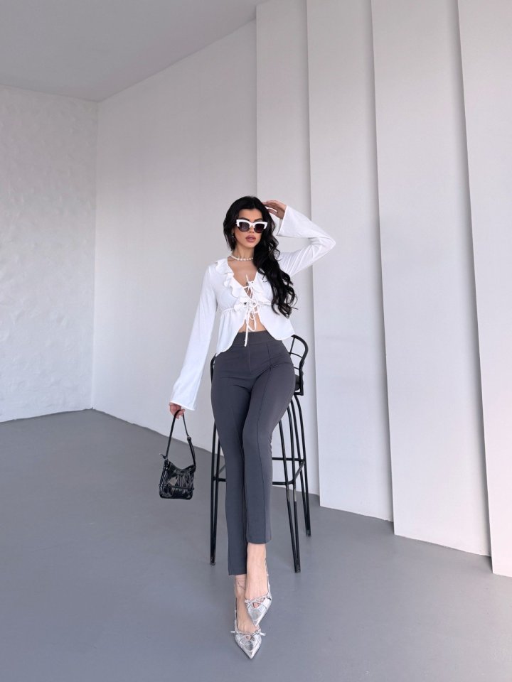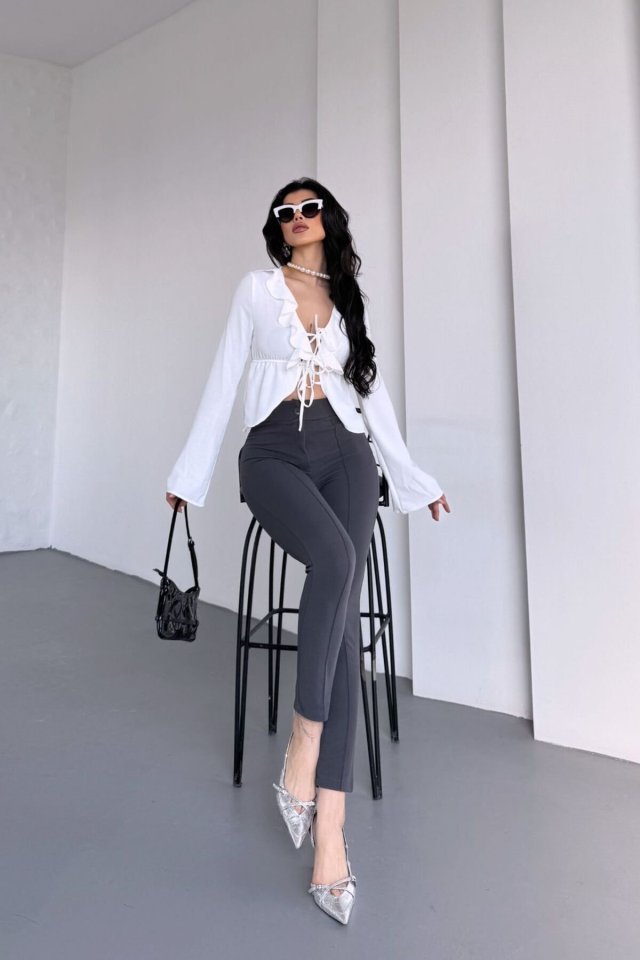 Kadın Krep Kumaş çimalı Yüksek Bel Pantolon