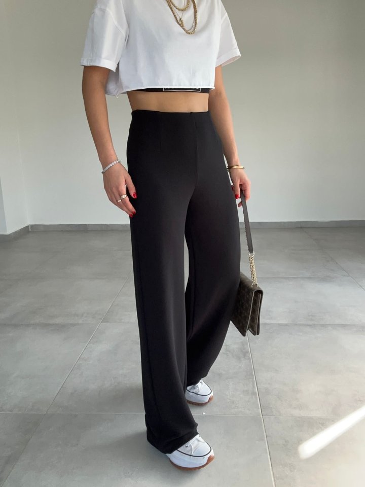 Kadın Krep Kumaş Gipe Detay Palazzo Pantolon