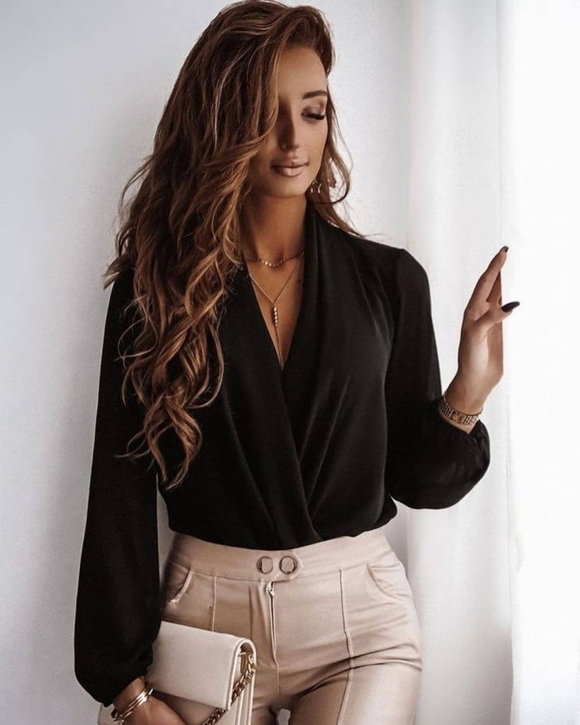 Kadın Kruvaze Yaka Büyük Beden Sandy Bluz