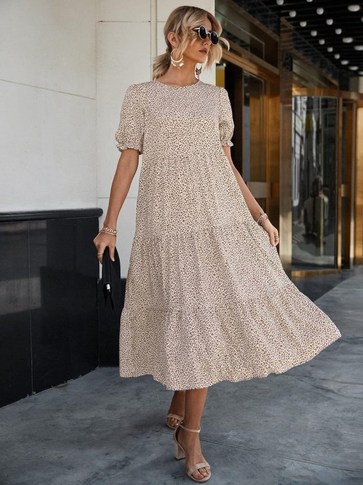 Kadın Mini Leopar Desen Midi üç Kat Elbise