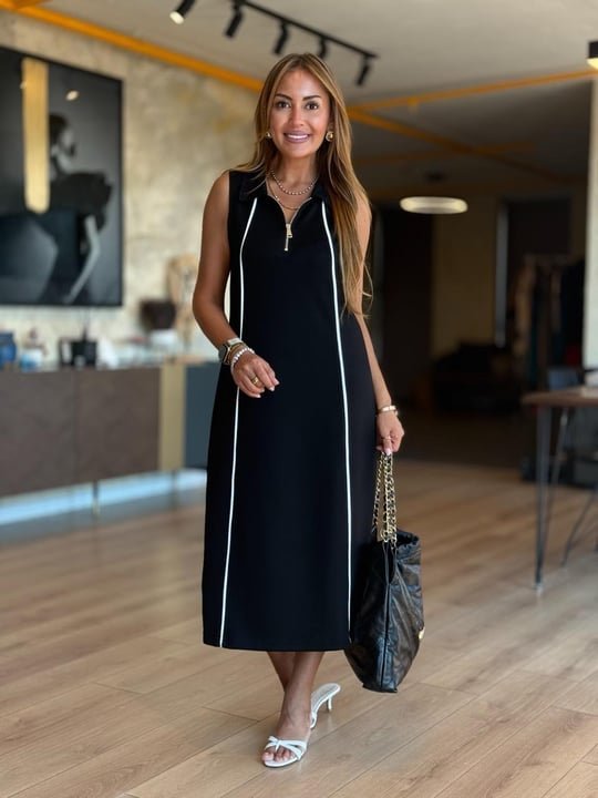 Kadın Modal Kumaş şerit Detaylı Fermuarlı Midi Elbise