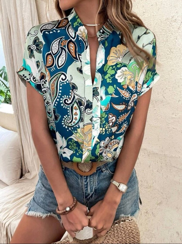 Kadın Moss Krep Kumaş V Yaka Yarasa Kol Bluz