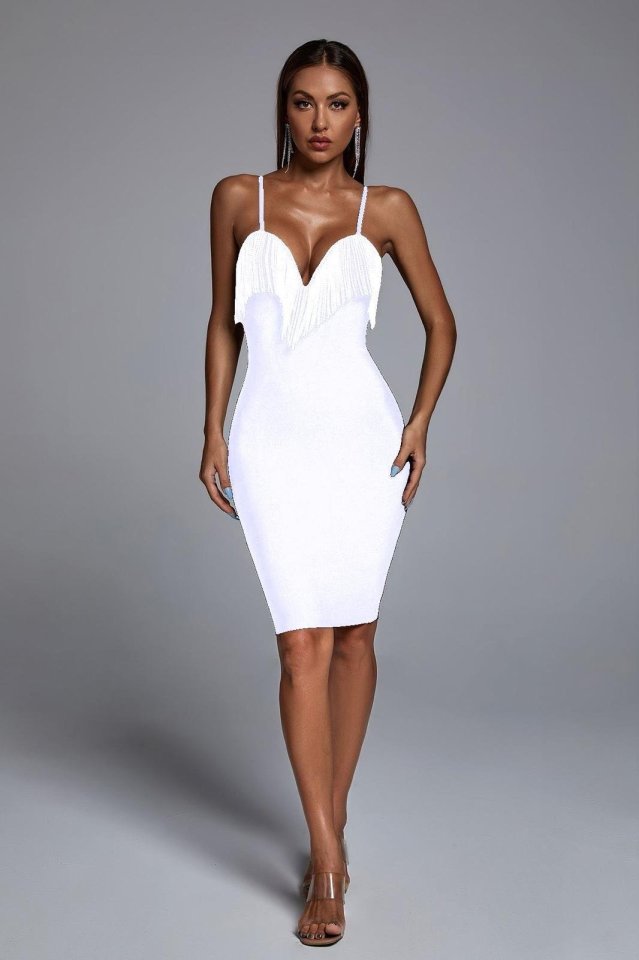 Kadın Omuz Askılı Derin Göğüs Dekolteli Zincir Detay Mini Elbise