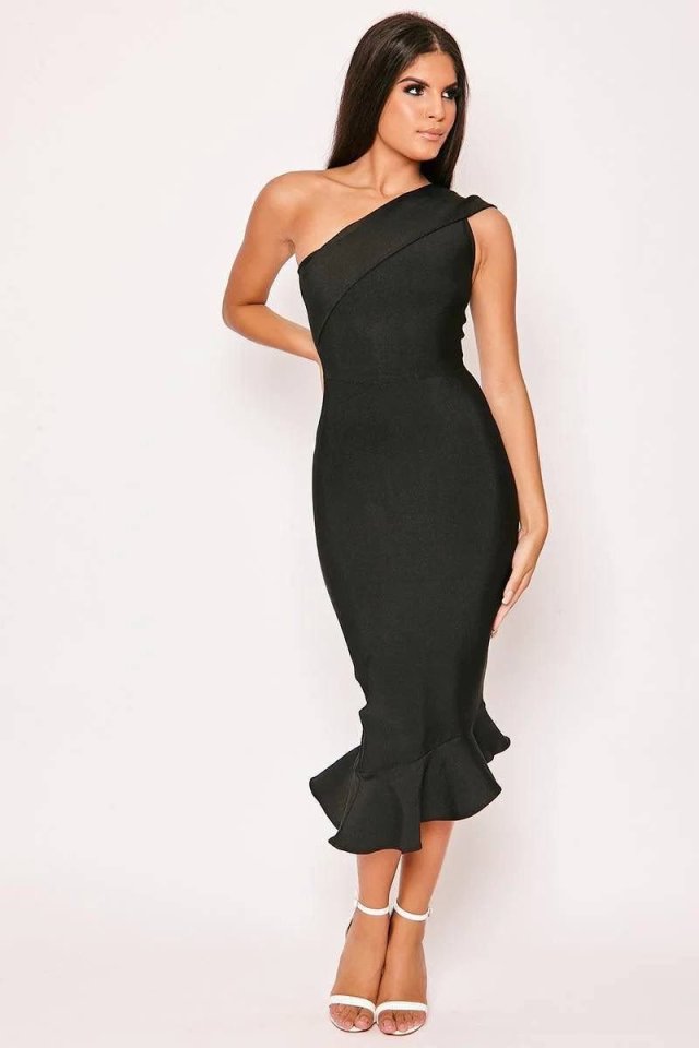 Kadın Omuz Dekolteli Asimetrik Volan Detay Fırsat ürün Elbise