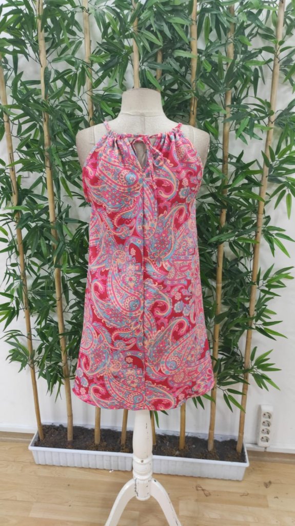 Kadın Omuzlardan Açık Boyundan Askılı çok Renkli Dokuma Elbise