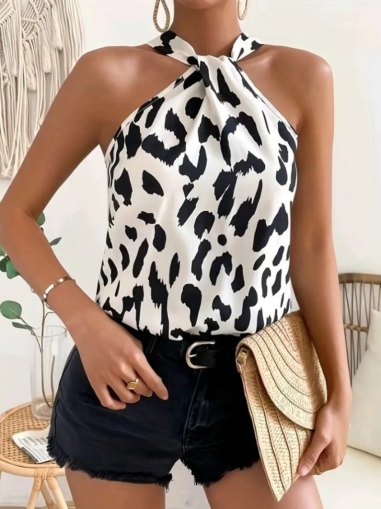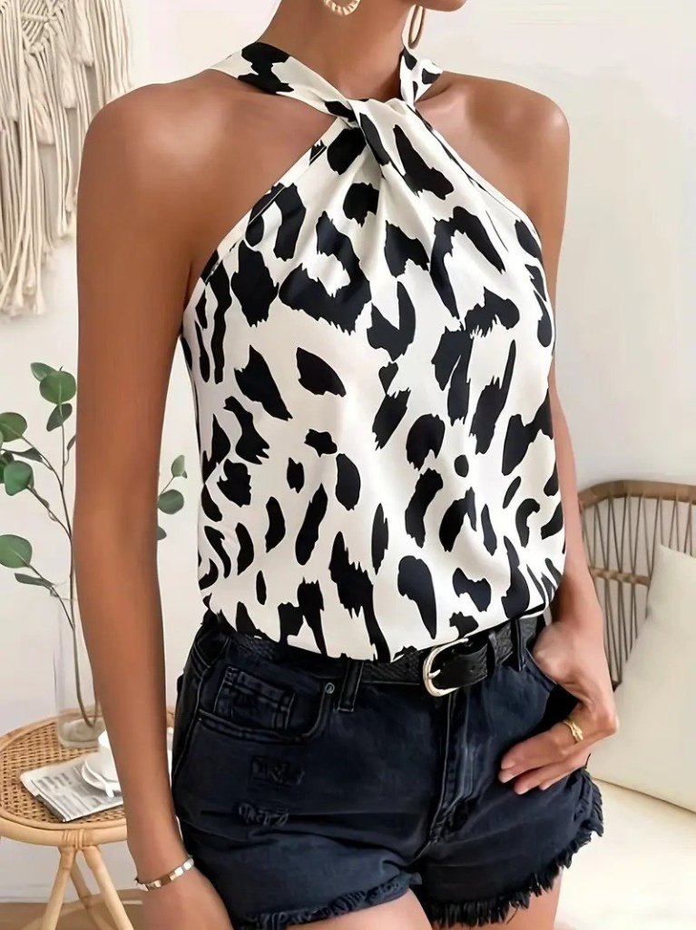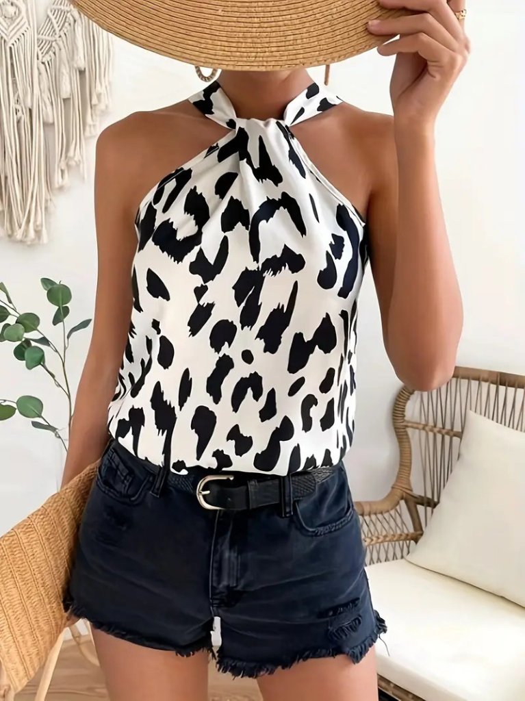 Kadın Omuzlardan Açık Boyundan Geçmeli Desenli Dalgıç Bluz