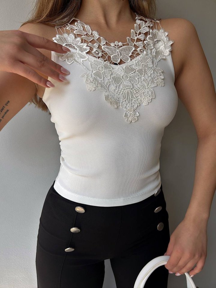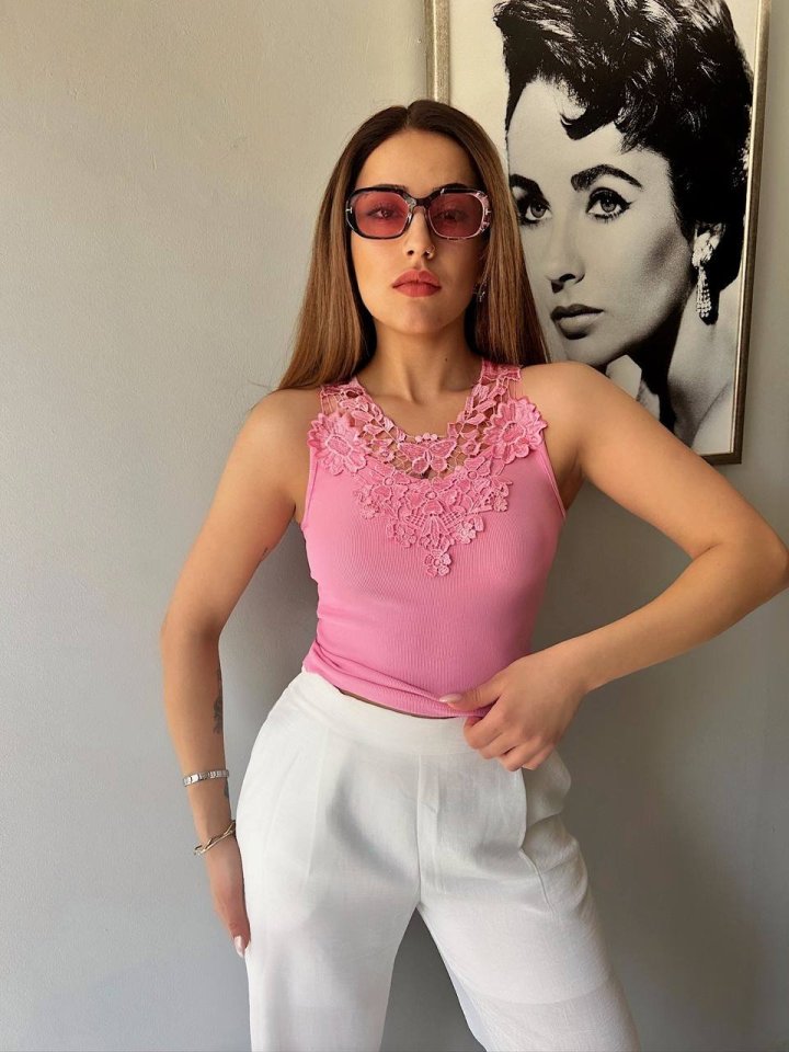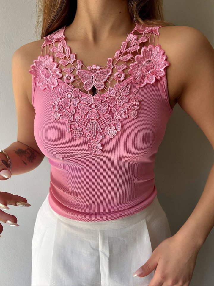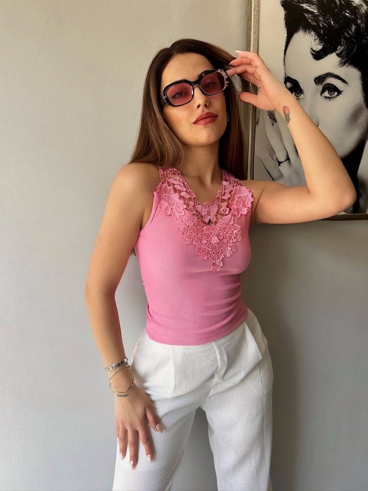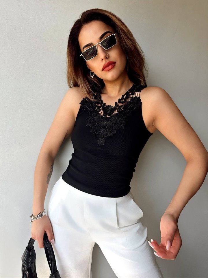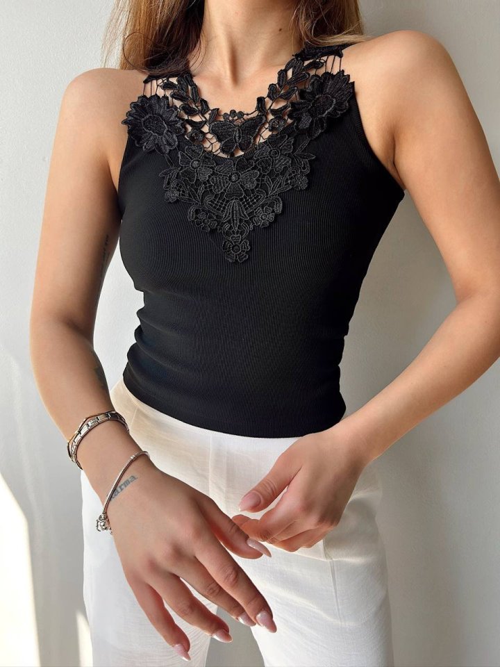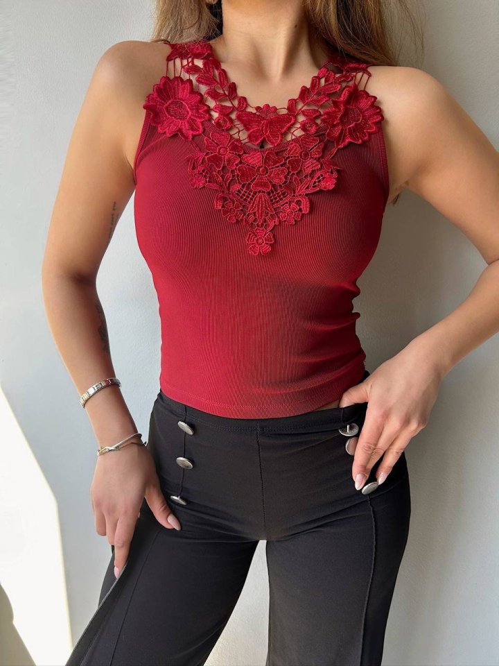 Kadın Ottoman Kumaş Dantel Detaylı Bluz