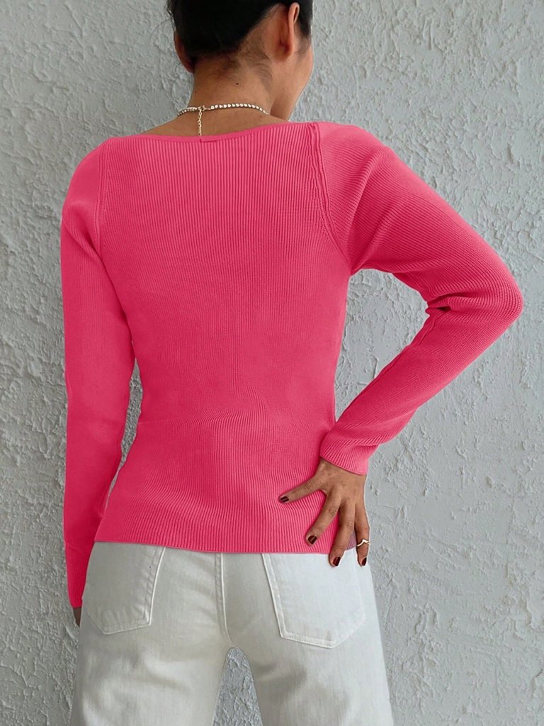 Kadın Pembe Dekolteli Kare Yaka Triko Bluz