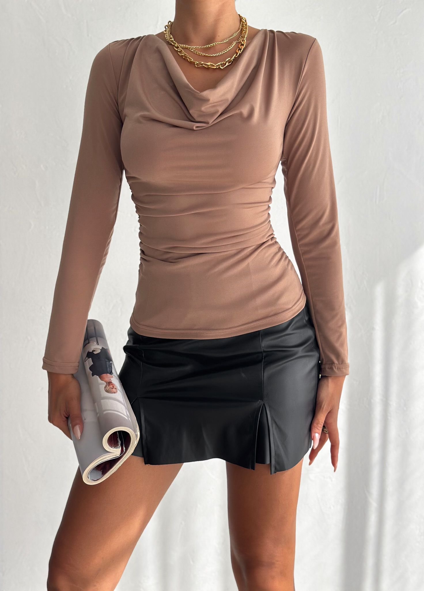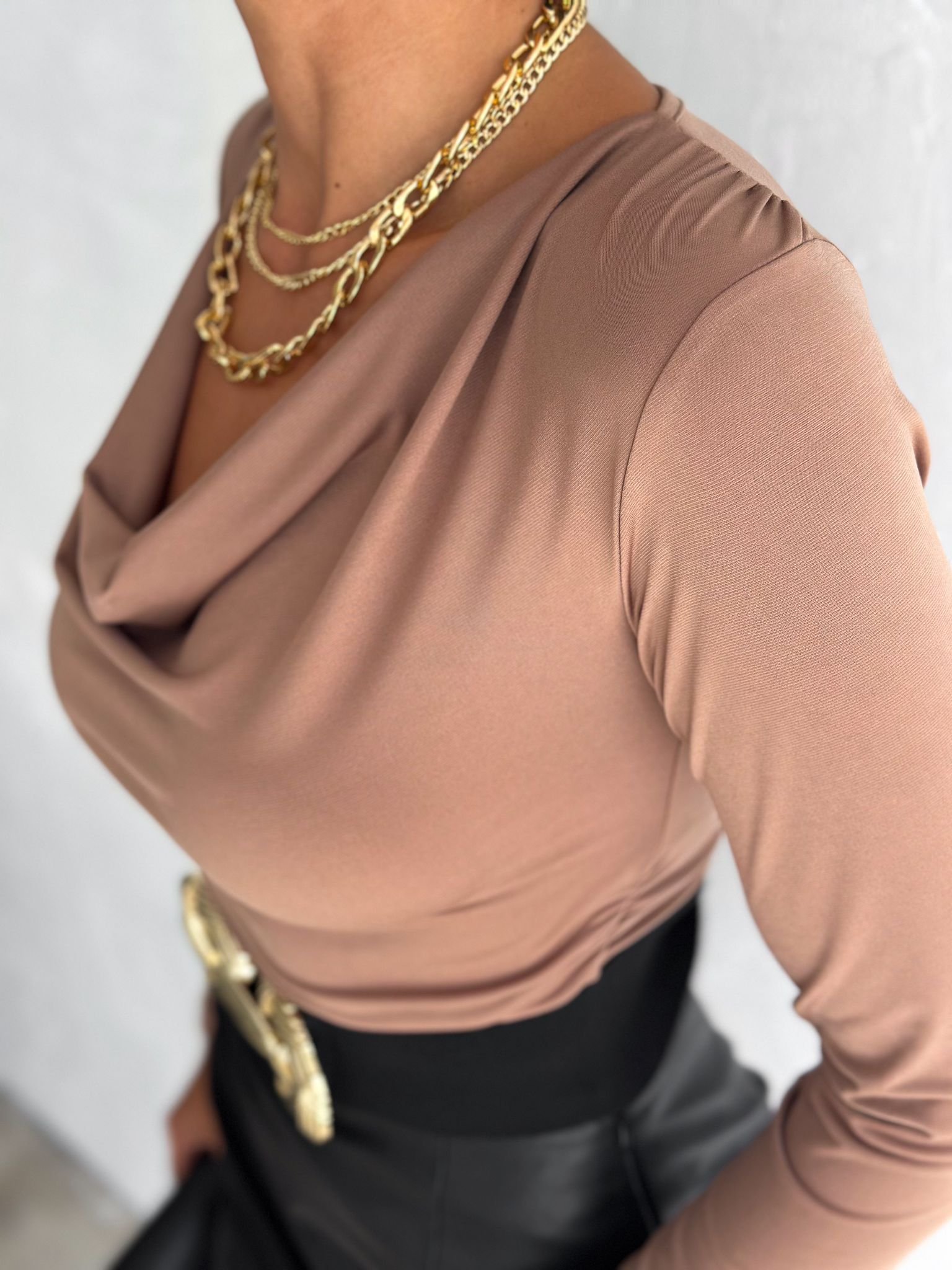 Kadın Sandy Kumaş Degaje Yaka Uzun Kollu Bluz