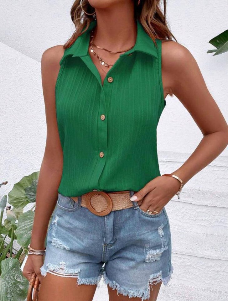 Kadın Sıfır Kol Pamela Kumaş Gömlek