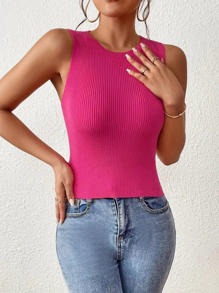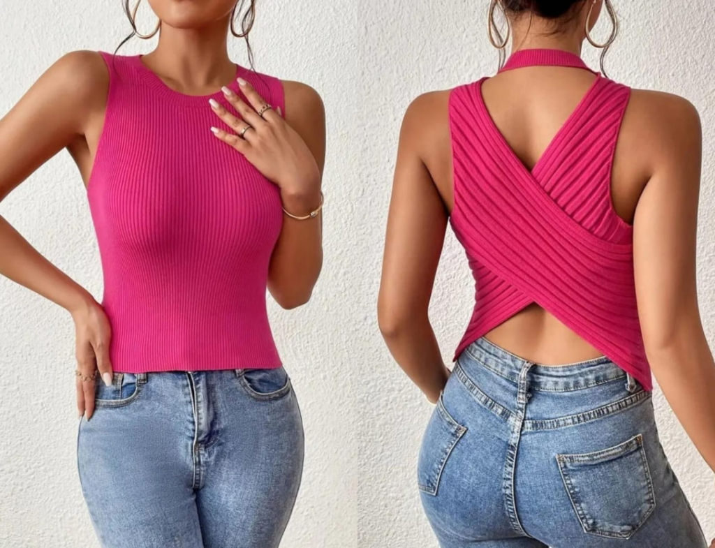 Kadın Sıfır Kol Sırt çapraz Detay Triko Bluz