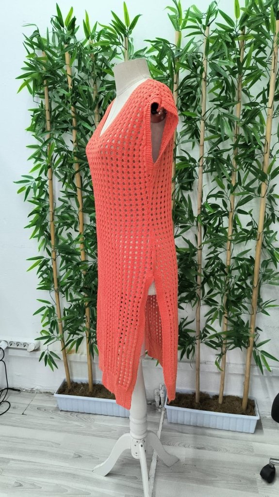 Kadın Sıfır Kol V Yaka Yanı Derin Yırtmaçlı Midi Boy Triko Elbise