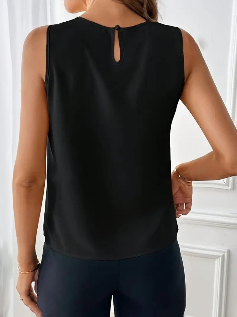 Kadın Sıfır Kollu Bisiklet Yaka önden Pileli Ithal Krep Bluz