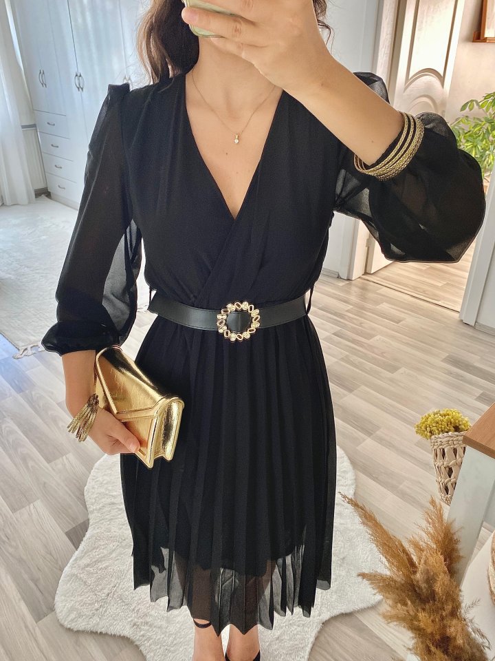 Kadın şifon Kumaş Astalı Kloş Kesim Kruvaze Yaka Midi Boy Elbise