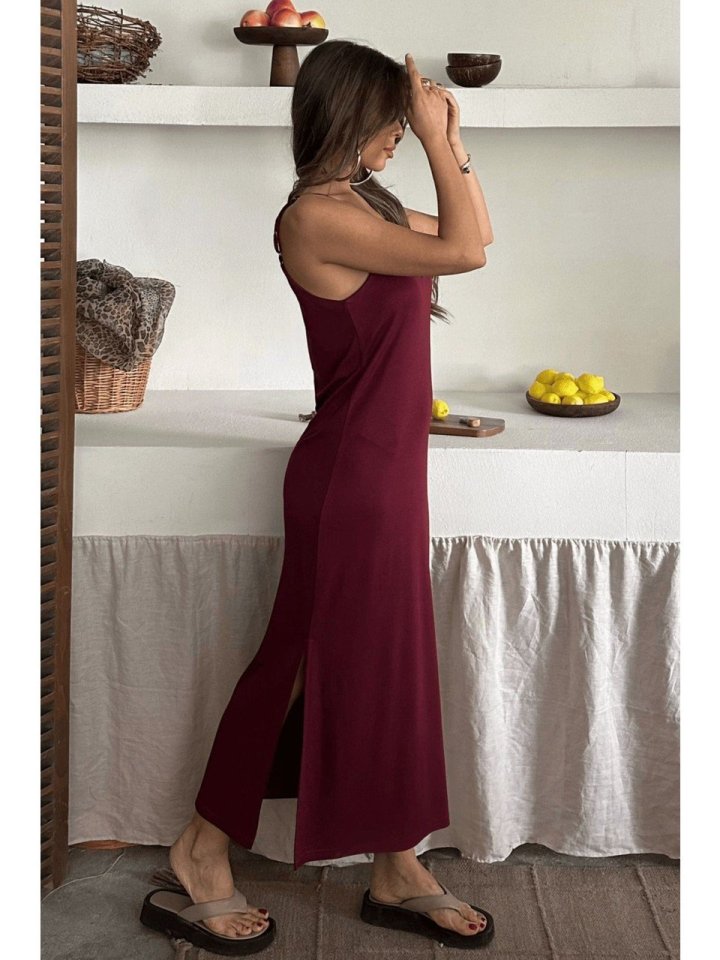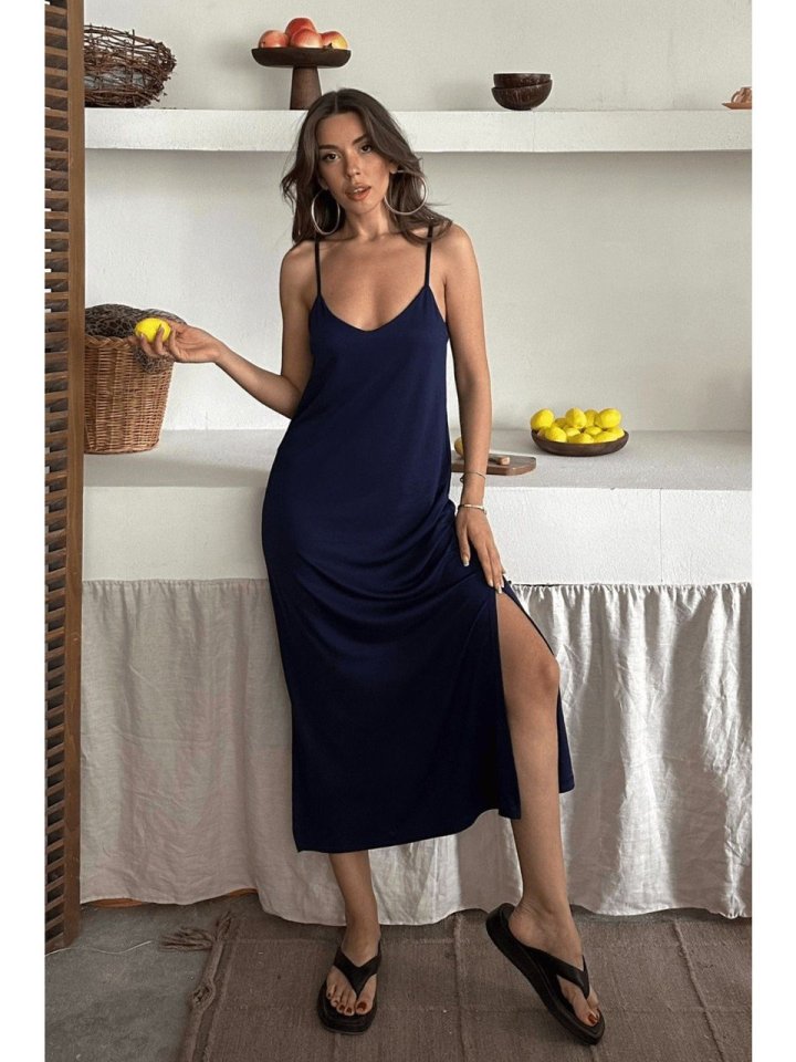 Kadın Siyah Asansör Askılı Çift Yırtmaçlı Helen Elbise