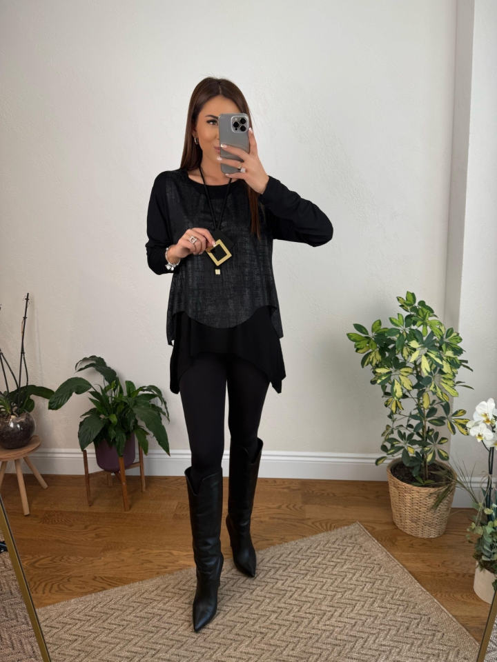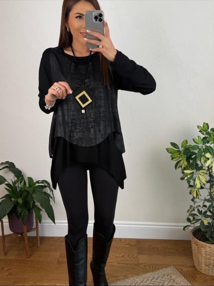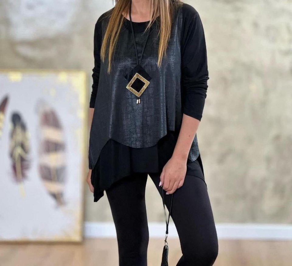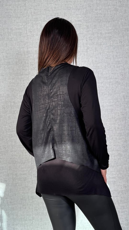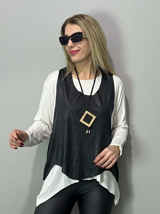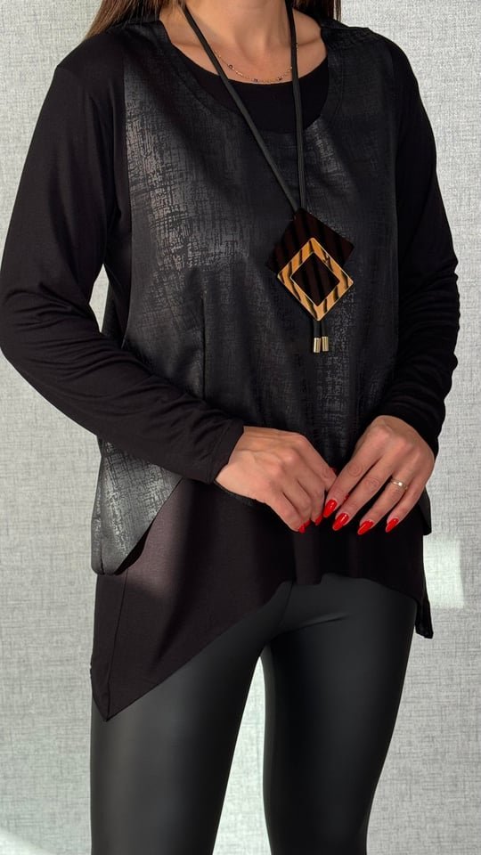 Kadın Siyah Deri Yelekli Kolye Dahil üçlü Takım