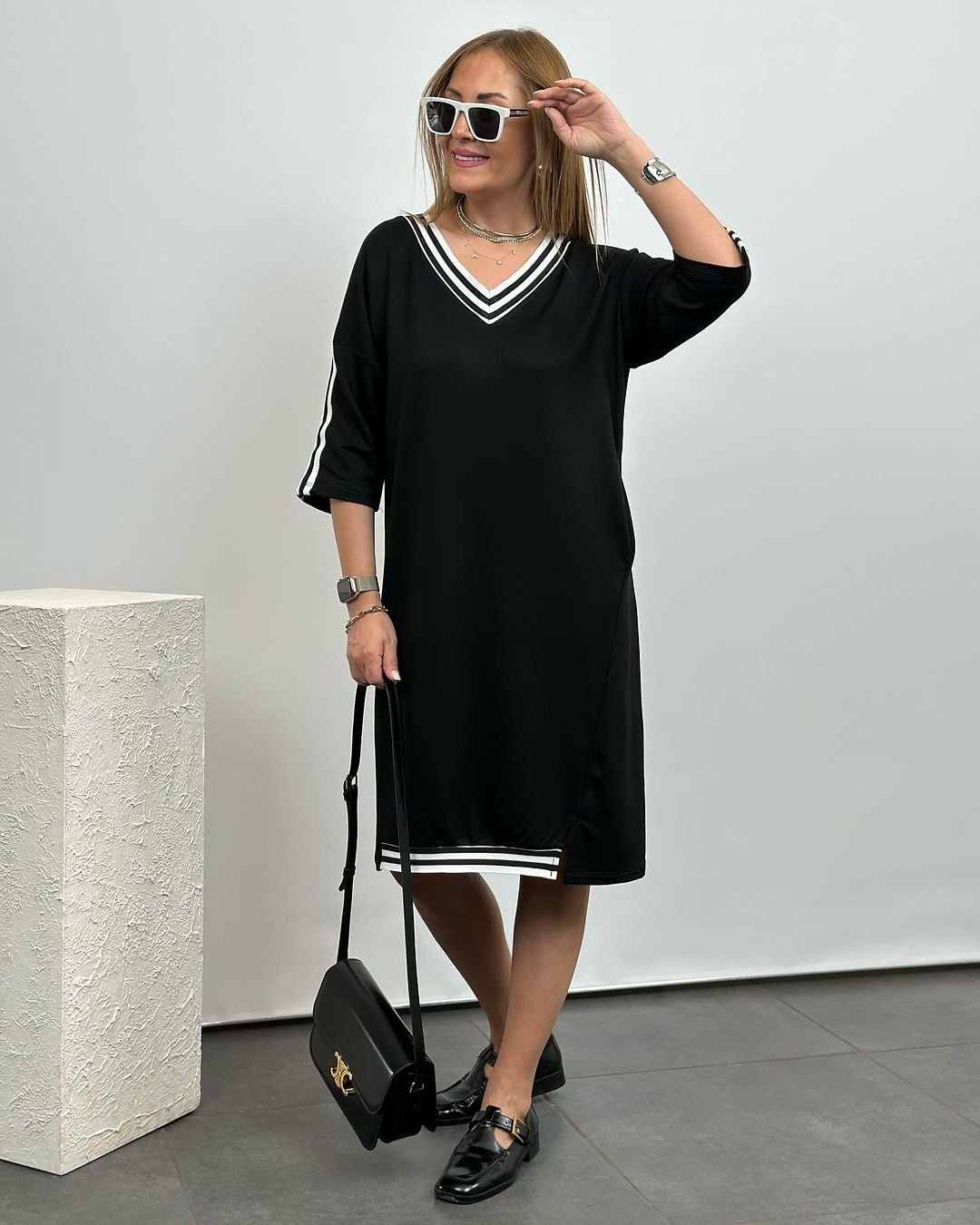 Kadın Siyah Diz Üstü Ribanalı Elbise