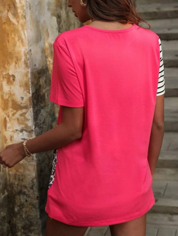 Kadın Süprem Kumaş Leopar Desenli Ve Cizgili Oversize Bluz