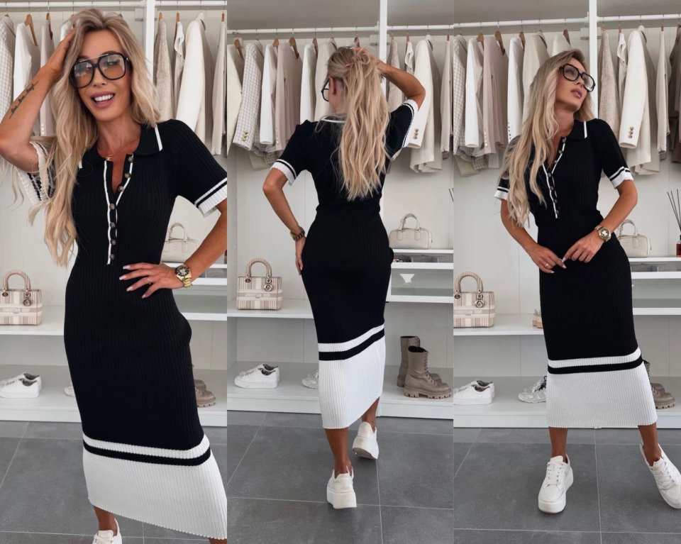 Kadın Triko Polo Yaka Midi Boy Elbise
