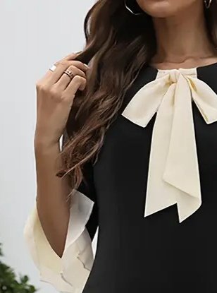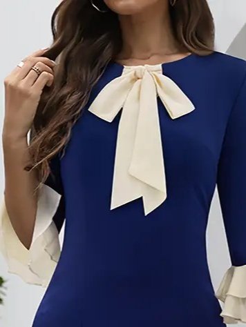 Kadın Truvakar Kollu Fiyonk Yakalı Midi Ithal Krep Elbise