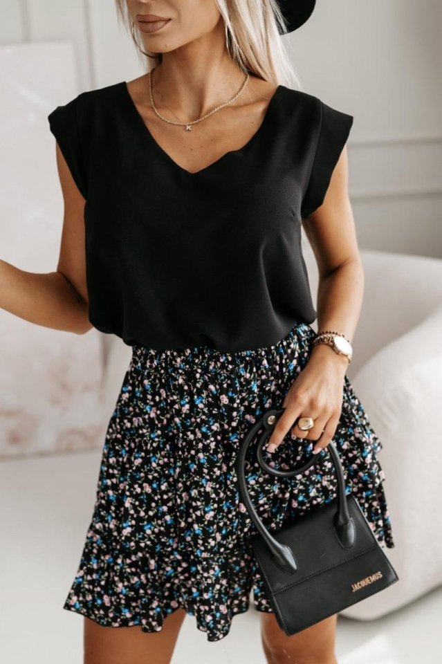 Kadın Üst Sandy Kumaş Bluz, Alt Çiçek Desenli Süprem Kumaş Etek İkili Takım