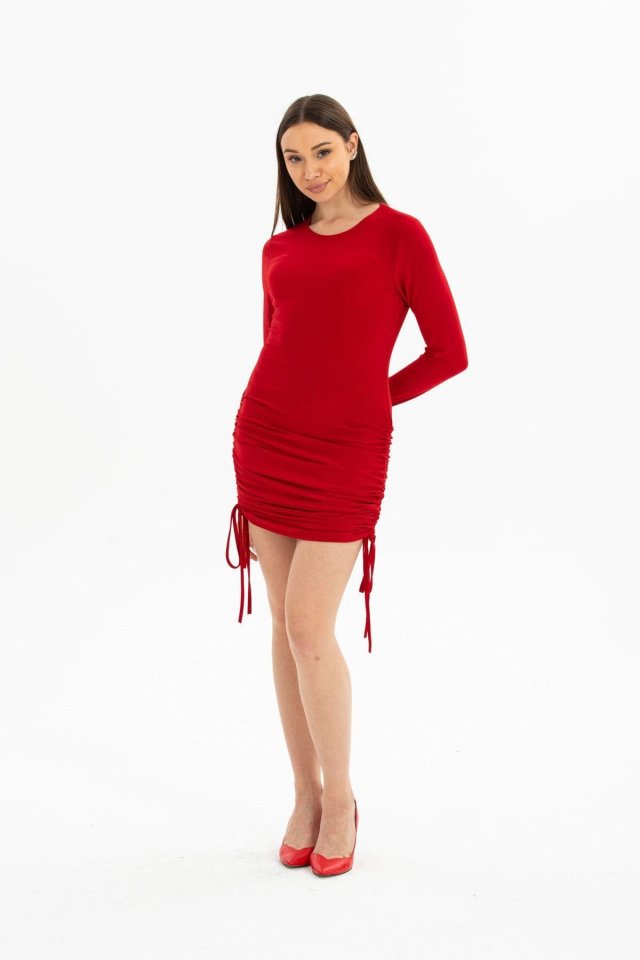 Kadın Uzun Kol Büzgü Detaylı Sandy Kumaş Ayarlanabilir Boy Fırsat Ürün Elbise