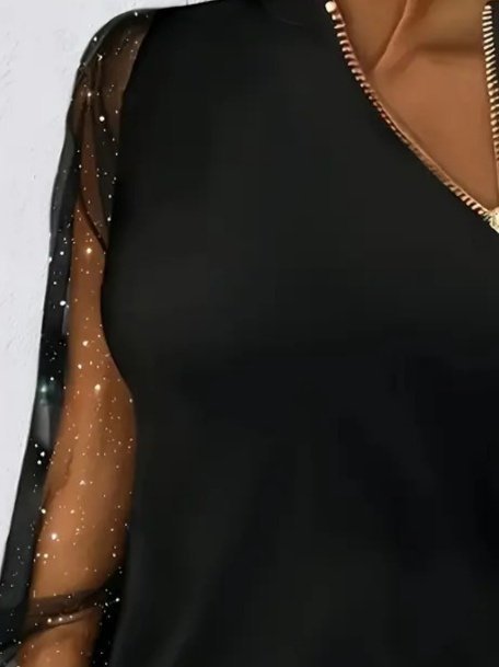Kadın Uzun Kollu Asimetrik Fermuar Detaylı Viskon Iki Iplik Bluz