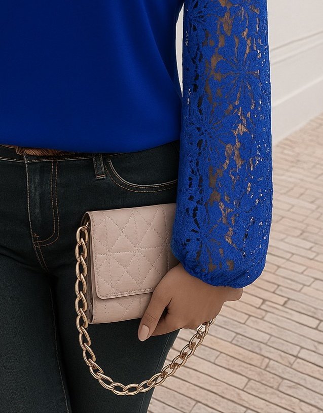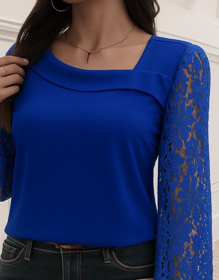 Kadın Uzun Kollu Asimetrik Yakalı Dantelli Ithal Krep Bluz
