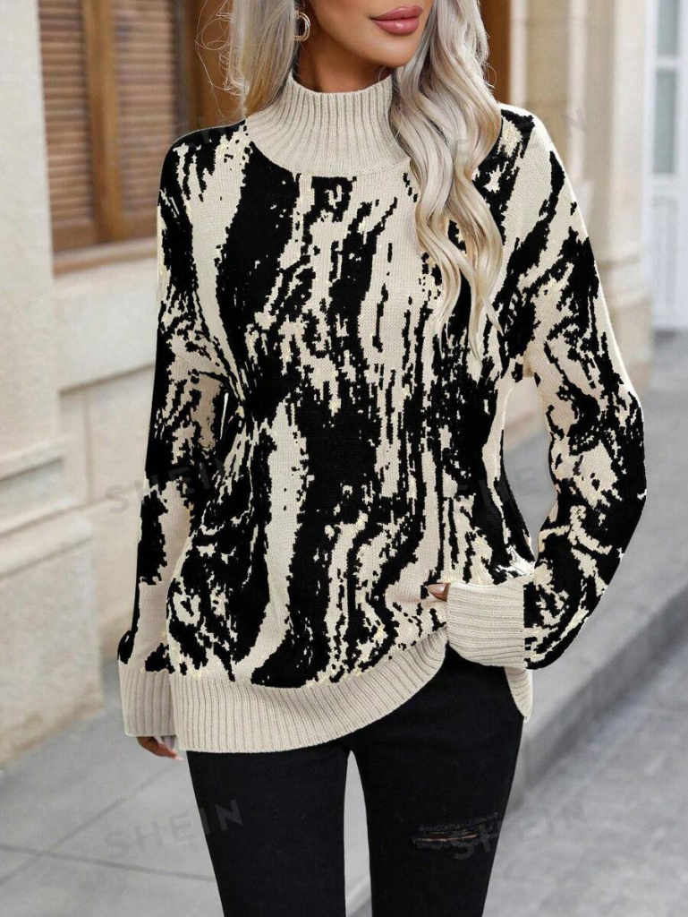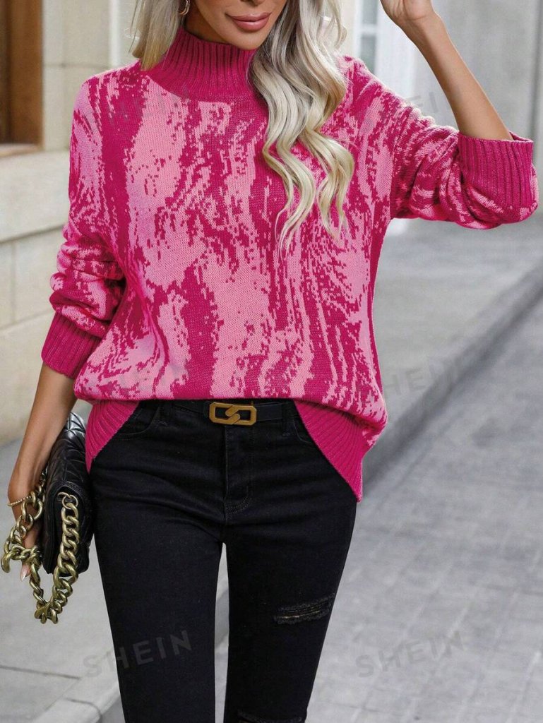 Kadın Uzun Kollu Balıkçı Yaka çok Renkli Triko Bluz
