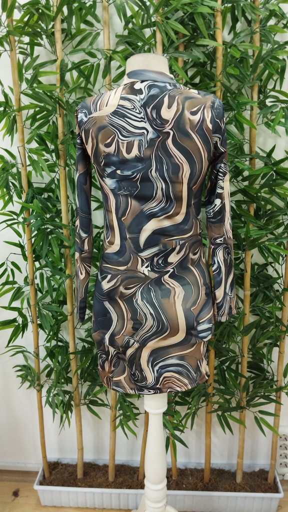Kadın Uzun Kollu Balıkçı Yaka Desenli Dalgıç Elbise